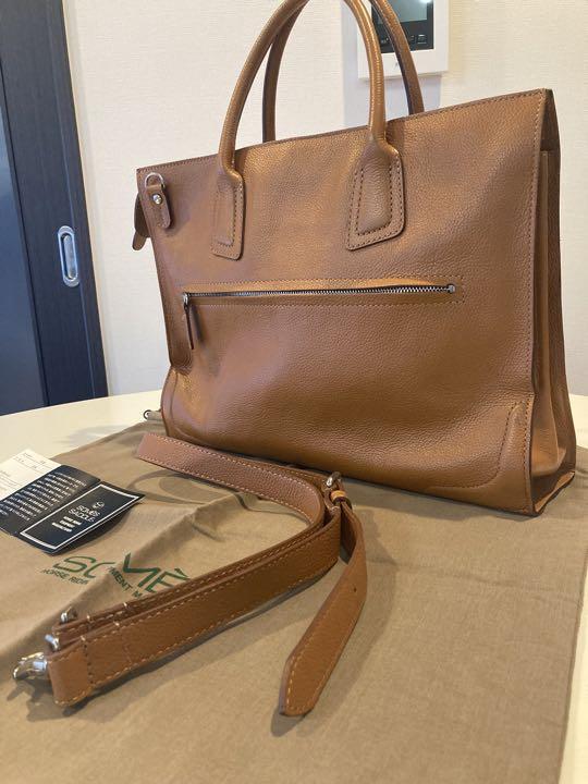 カラー···キャメル(ブラウン?) 素材···本革 バッグサイズ···A4サイズ収納可