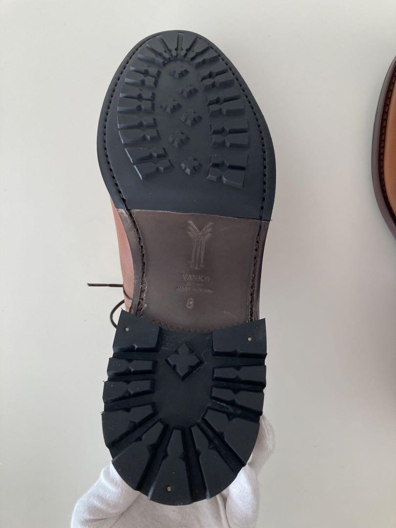 『YANKO』ブランドが誕生。製法はイギリスのグッドイヤー・ウェルテッド方式をいち早く取り入れ、靴作りに関しては英国に引けを取らない。現在もグッドイヤー・ウェルテッド方式のモデルが多く、木型は日本人の足に合うように調整をしている。 ★天然皮革を使用しておりますので、革の部分によっては、左右あるいは片方において、外側と内側で革の質感が異なる場合や、本革の性質上、皺や傷、色むら、ステッチずれがある場合がございます。 これらは不良品ではなく、革製品特有のものとなりますので予めご了承頂きご使用をお楽しみ下さい。 EEワイズとなっておりますので、幅や甲は広めの作りとなります。 通常履かれているサイズよりも、0.5cm小さめをお勧め致します。 ※サイズ感には個人差がございますのであくまでも参考程度にお考え下さい。