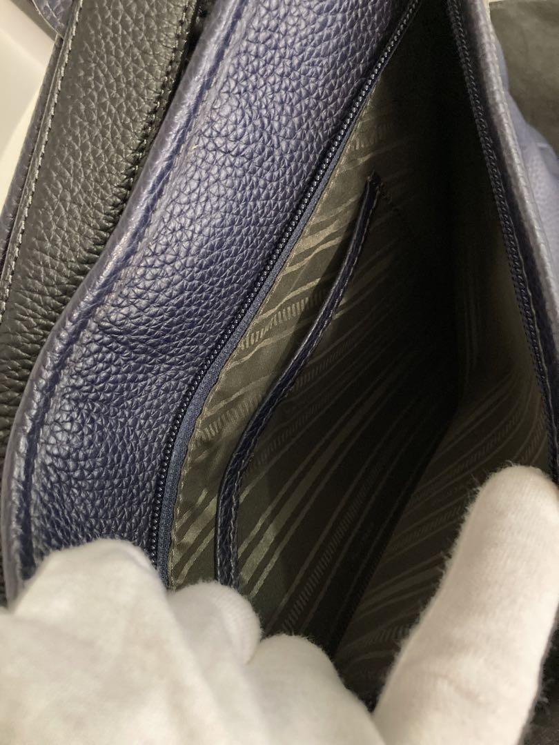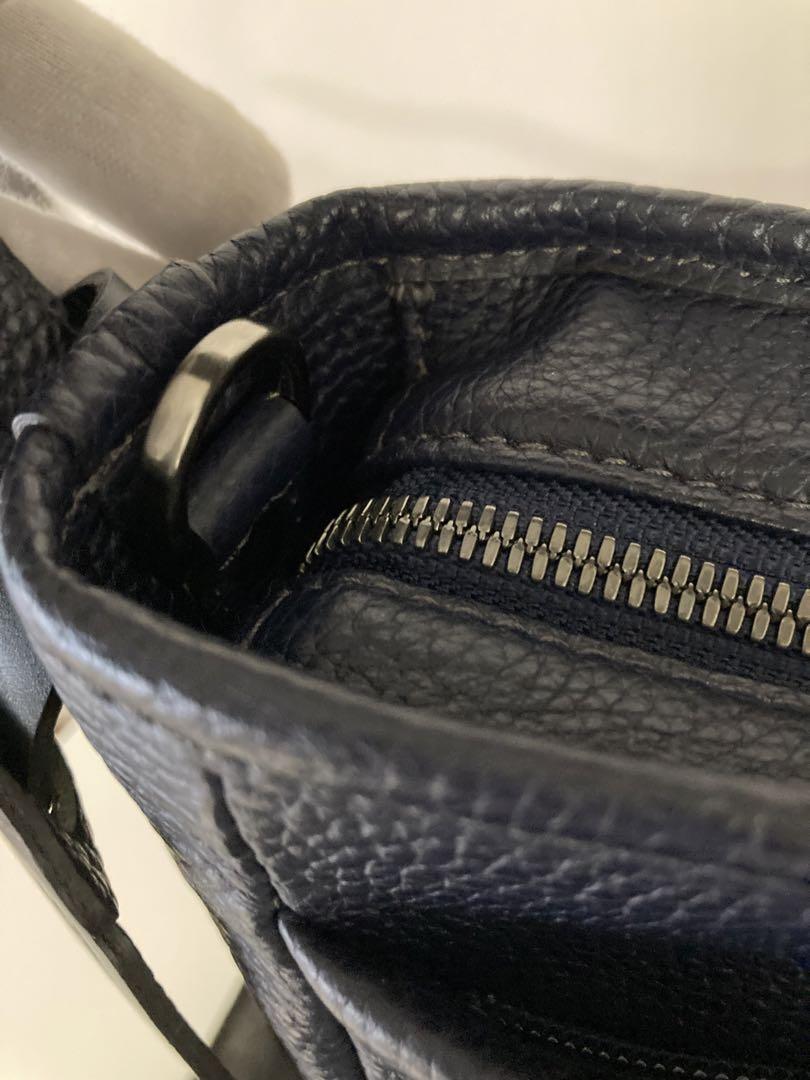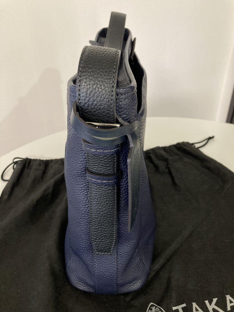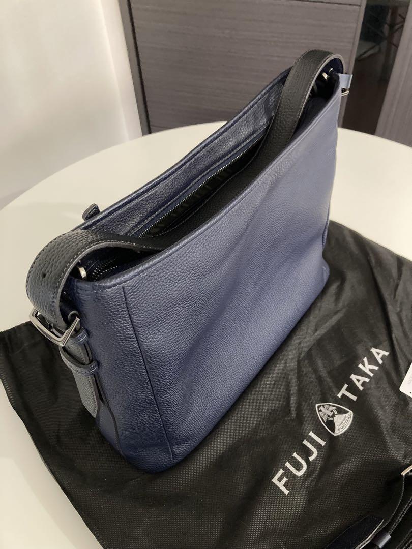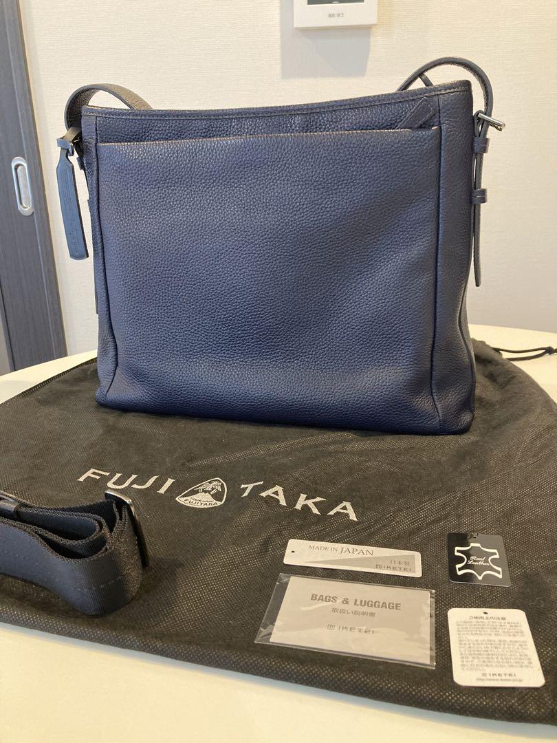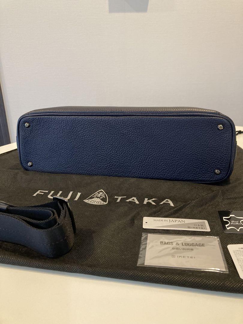 柄・デザイン···無地 素材···本革 幅(下部)約40センチ 幅(上部)約36センチ FUJITAKA フジタカ エルバ レザー バッグ 濃紺 定価 ¥53.000- 新品未使用(ショルダー ストラップ付き)自宅保管品。
