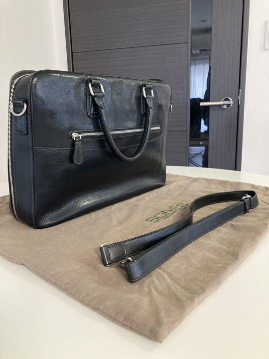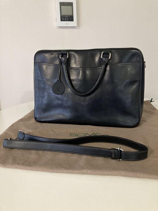 somes saddle カラー···ブラック 素材···本革 バッグサイズ···A4サイズ収納可 内側がとても素敵ですが、画像の通り、サイドポケットの上部が一部、折れ曲がって、癖がついてます。 イノベーション 黒 中が空だと自立はしないです。 現行のイノベーションの一つ、前の形でサイズが現行品より少し大きいと思います。