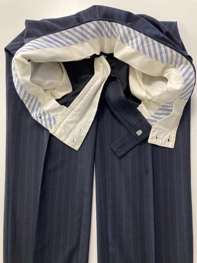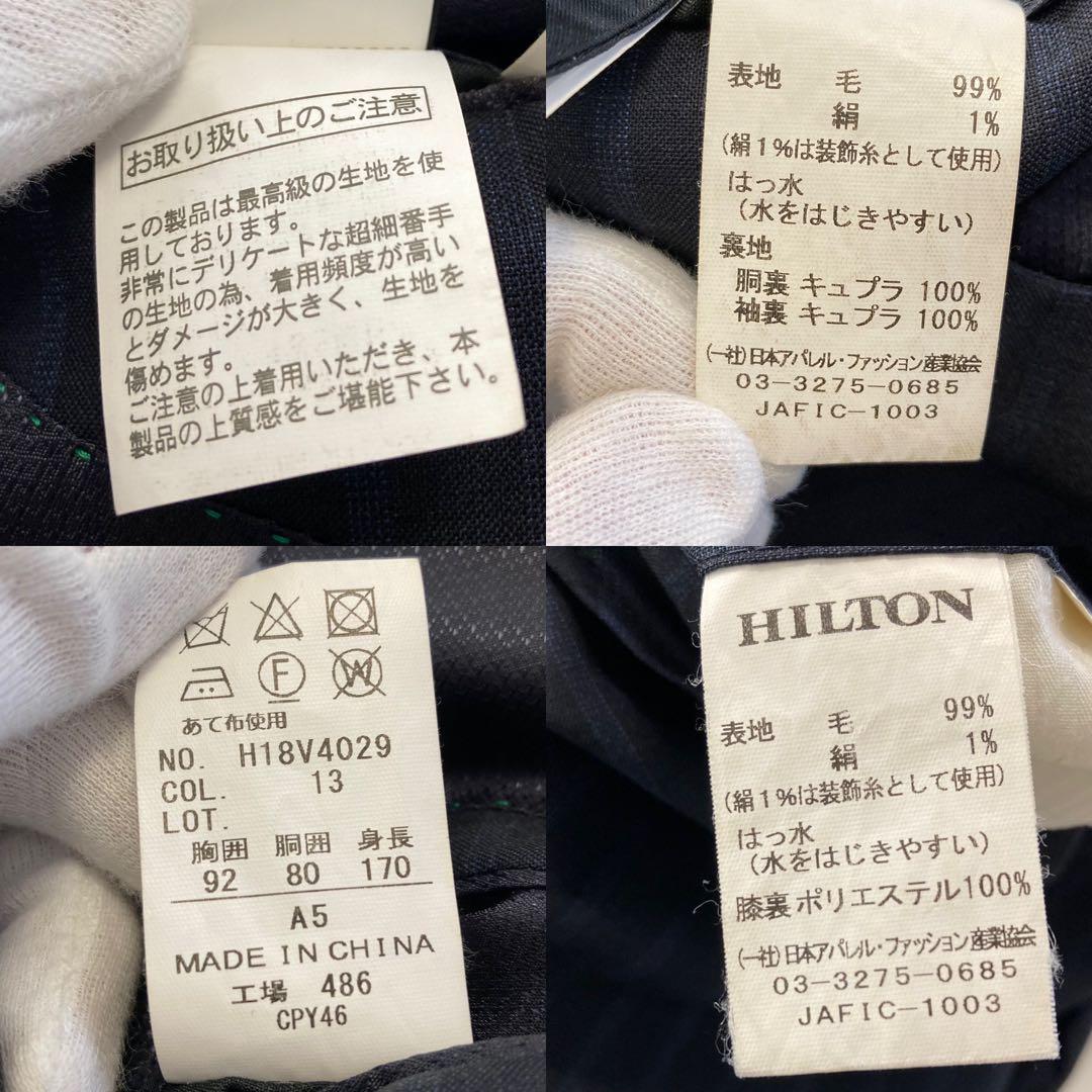 ヒルトンのスーツはとにかく軽くて柔らかくて着ていて疲れません。 青山の店員さんに安くて着てて疲れるスーツと高くて疲れないスーツだったら結局、費用対効果で後者のヒルトンの方が良いんですよと言われてから、ずっとヒルトンです^_^ また裏地は総キュプラなので、これもツルツルスベスベしていて動く時にストレスを感じないのです。ジャマにならないのです。 だいたい2万円位までのスーツだと裏地は総ポリエステルで、3万円〜5万円位だと袖だけキュプラで、6万円以上で総キュプラになります。 他のメーカーでもそうです。お持ちのスーツを見てみて下さい。 またこのスーツは本切羽(ほんせっぱ)なので袖のボタンの所が飾りではなく実際に開く、外せるのです。だからどうしたで実際に外す事は無いのですが飾り(フェイク)なのと本当の機能を持ち合わせているのでは、やはり着ていて本人の、自分の自信に繋がります。偉い人に会う時でもビビらずにいられるのです。 背抜きなので春から秋向けですが、コート着る事を考えると冬でも使えます。 スーツ持ちすぎなので、整理の為に出品します。 目立つダメージはありません。 ジャケット表記 A5 身長170 胴囲80 胸囲92 ウエスト82 ユニバーサルランゲージ、ポールスミス、ビームス、ユナイテッドアローズ、麻布テーラー、ユニクロなどのスーツが好きな方にも良いと思います。